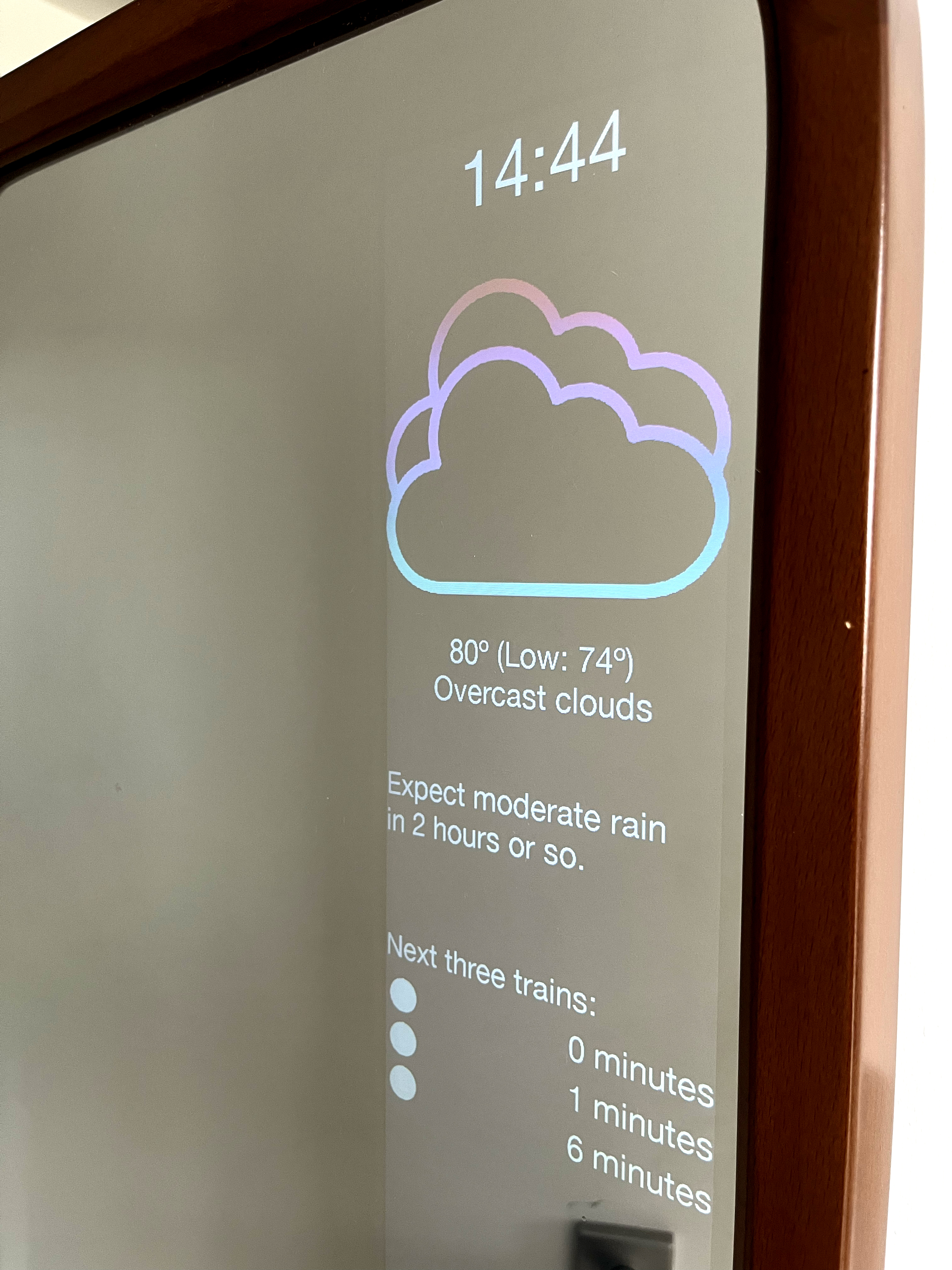 There are a lot of smart mirror projects out there, and a node.js library explicitly built for them to look awesome and do tons of stuff. But I wanted to build something that didn’t require any new knowledge, and since I don’t know node or JS, that meant I had to do it all in Python, if it was going to run on a Raspberry Pi.